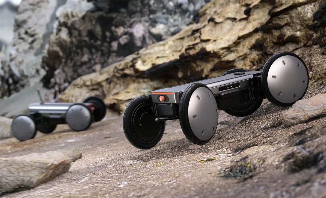 The device is designed as a compact, four-wheeled base equipped with autonomous navigation and advanced sensors, allowing it to perform a range of tasks in different industries.